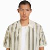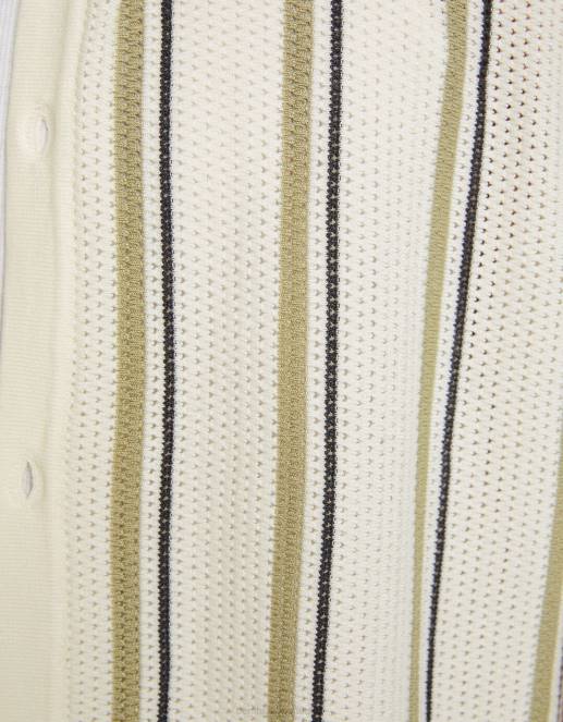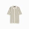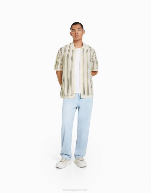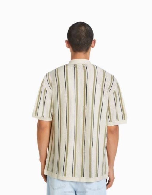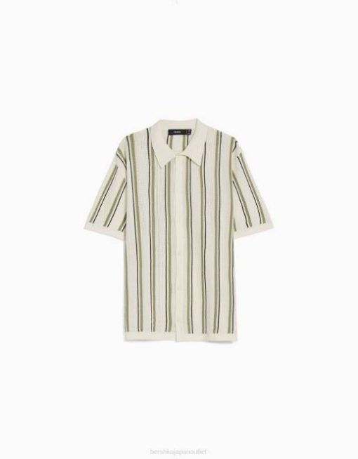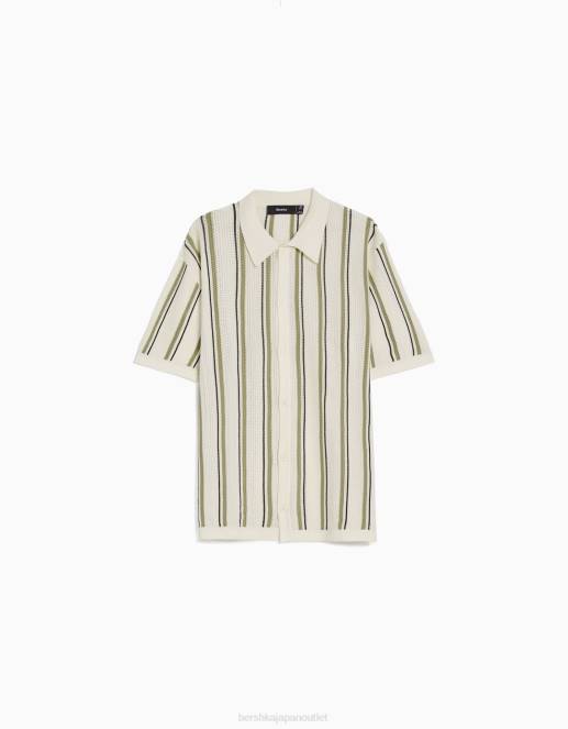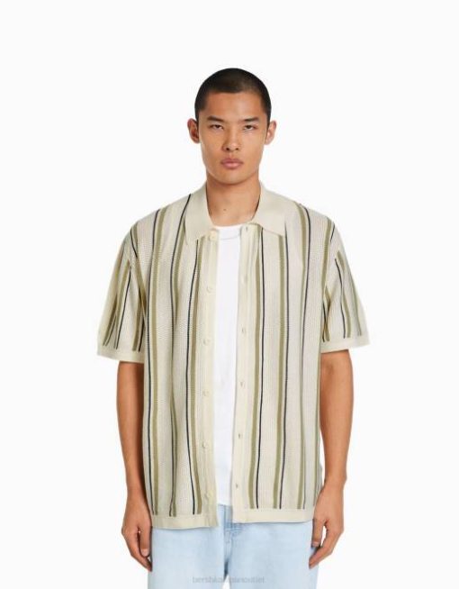 男性 Bershka ストライプ 透かし彫り 半袖シャツ 60442897 衣類 白
