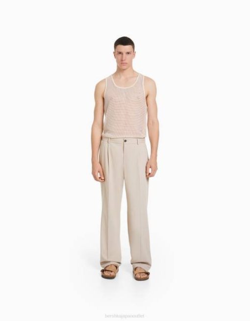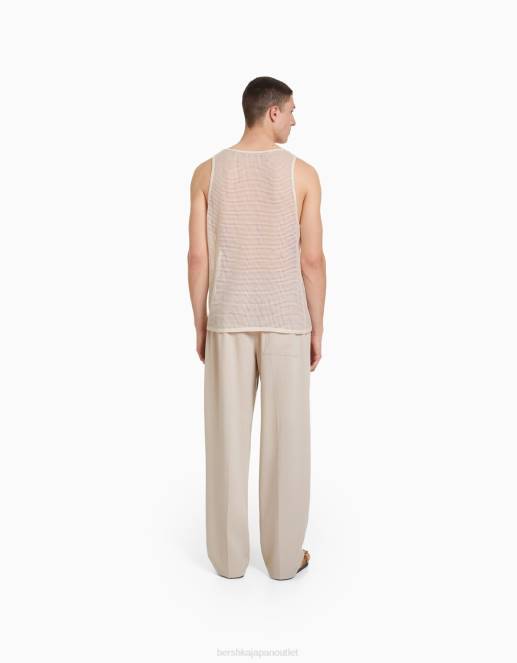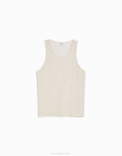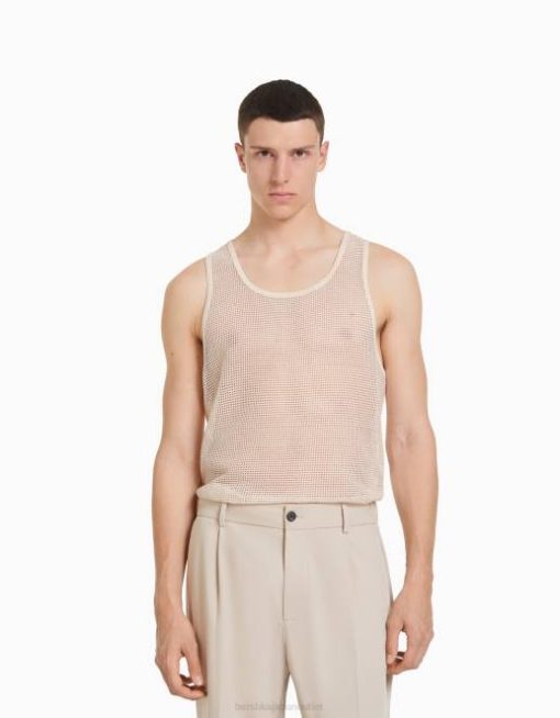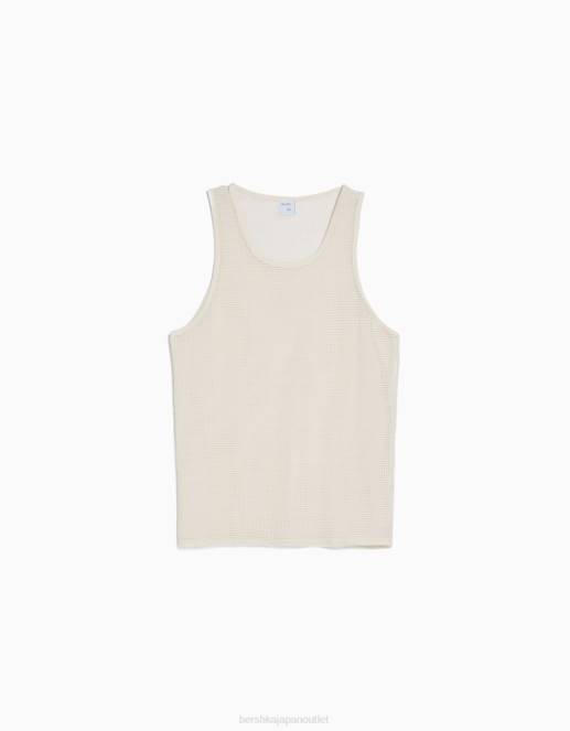 男性 Bershka ストラップ付きの素朴なメッシュTシャツ 60442623 衣類 オフホワイト