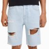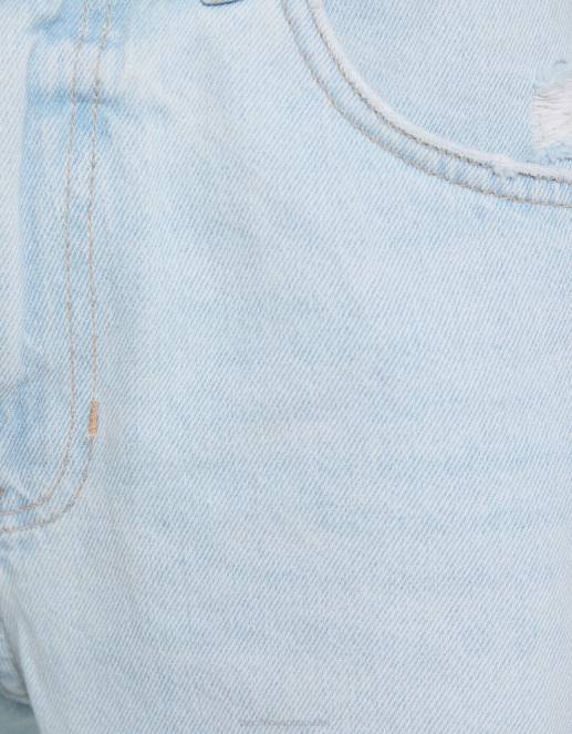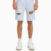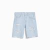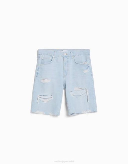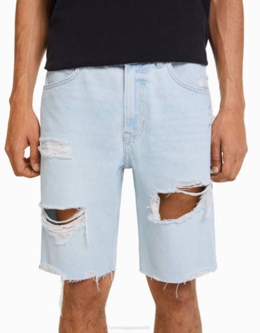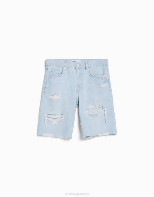 男性 Bershka スリムフィット リップド デニム バミューダ ショーツ 60443304 衣類 ライトブルー