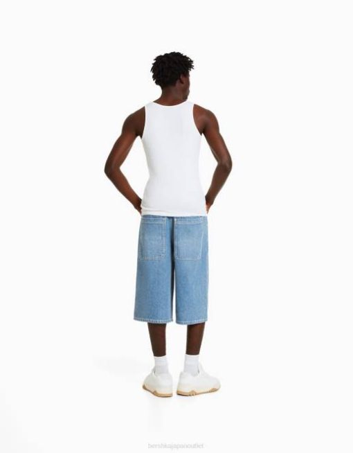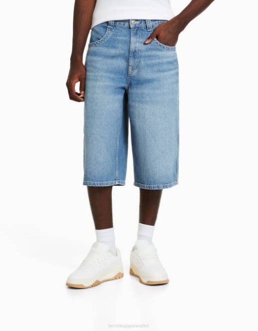 男性 Bershka スーパーバギー ’90s デニム バミューダ ショーツ 60443376 衣類 ライトブルー