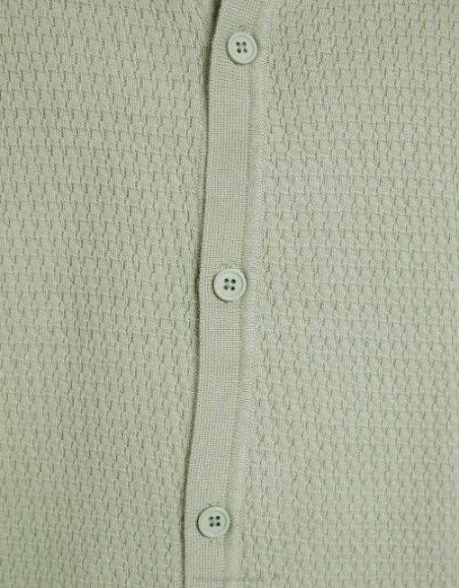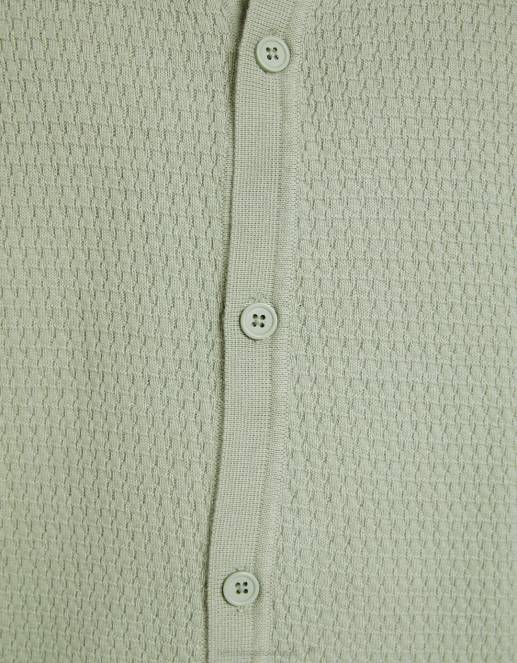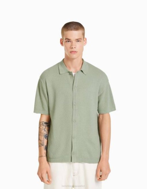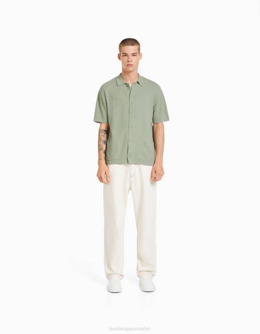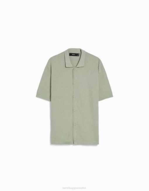 男性 Bershka テクスチャード半袖ニットシャツ 60442901 衣類 緑