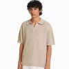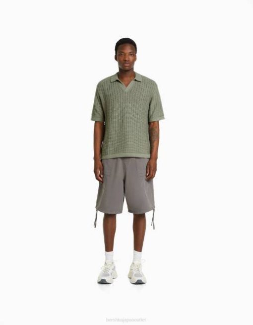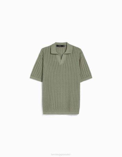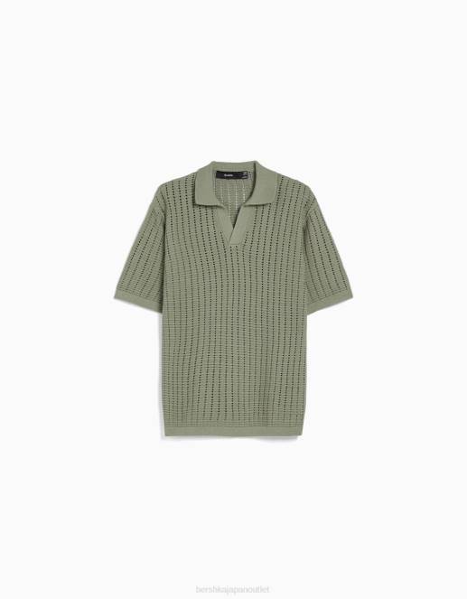 男性 Bershka テクスチャード ウィーブ ニット 半袖ポロシャツ 60442800 衣類 緑