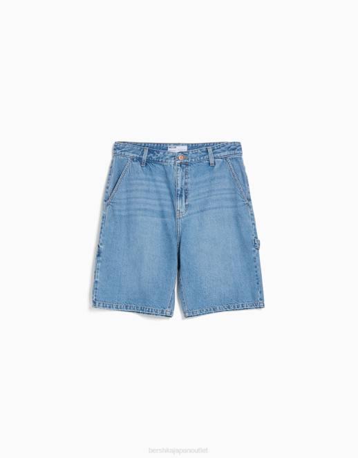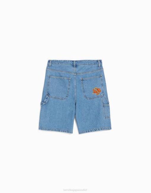 男性 Bershka デニムカーペンターバミューダショーツ 60443296 衣類 ライトブルー