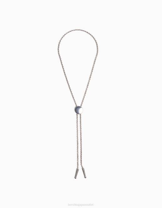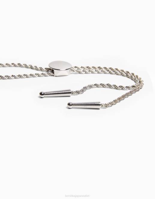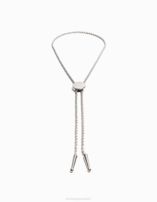 男性 Bershka ネクタイネックレス 60443686 アクセサリー 銀