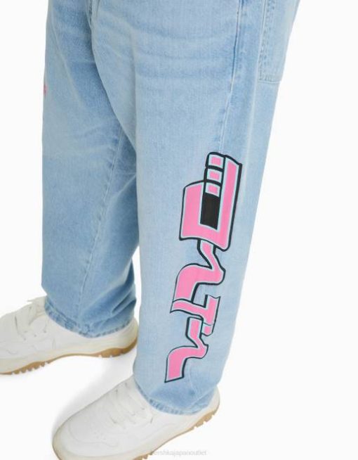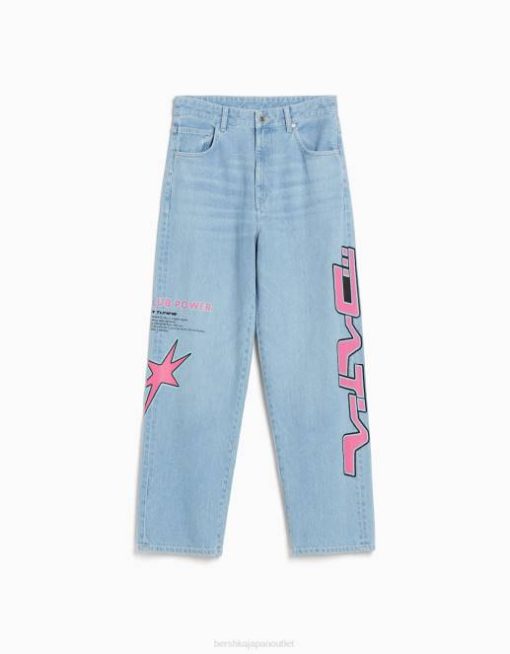 男性 Bershka バギープリントジーンズ 60443144 衣類 ライトブルー