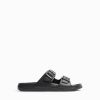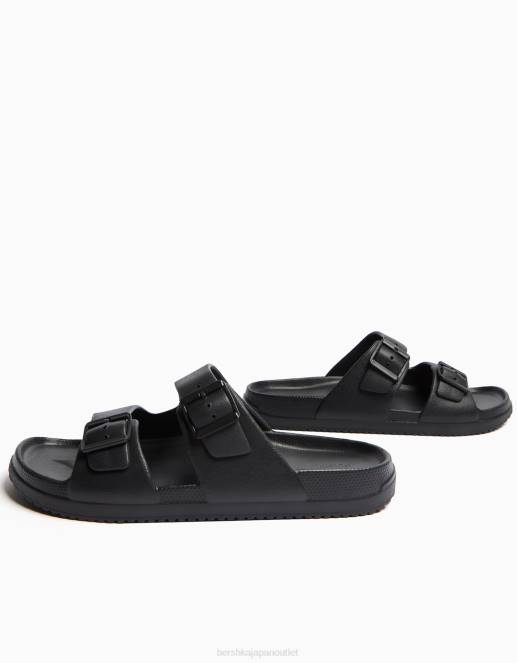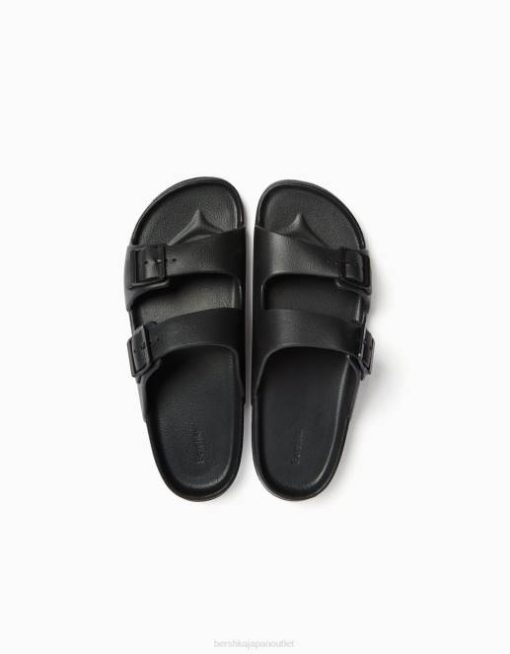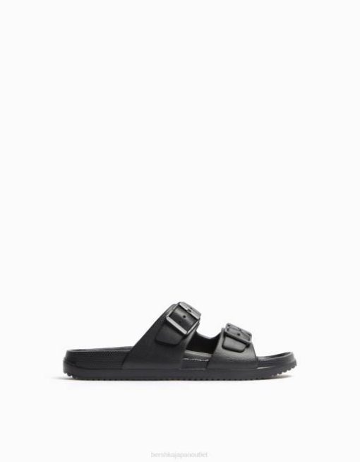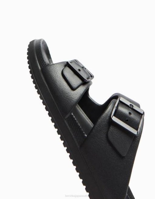 男性 Bershka バックル付きゴム引きサンダル 60443560 履物 黒