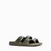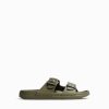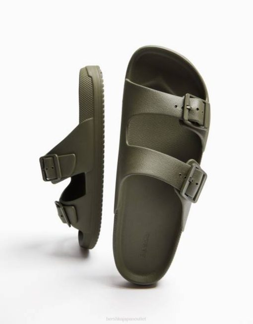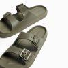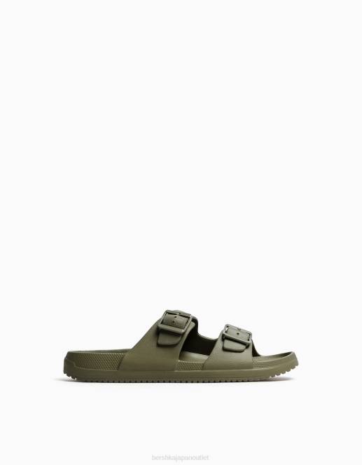 男性 Bershka バックル付きゴム引きサンダル 60443561 履物 カーキ