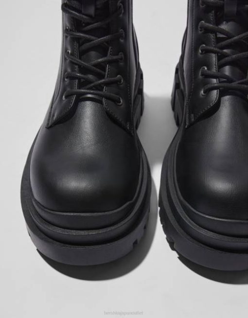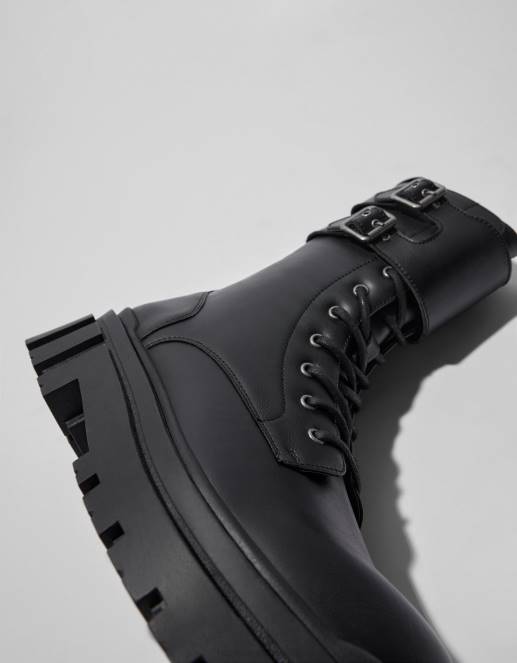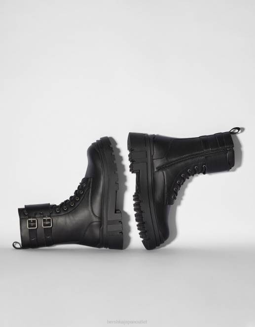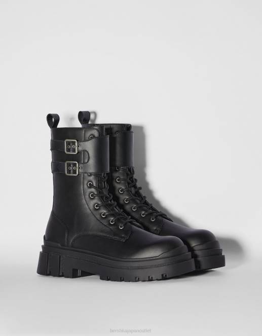 男性 Bershka バックル付きレースアップブーツ 60443462 履物 黒