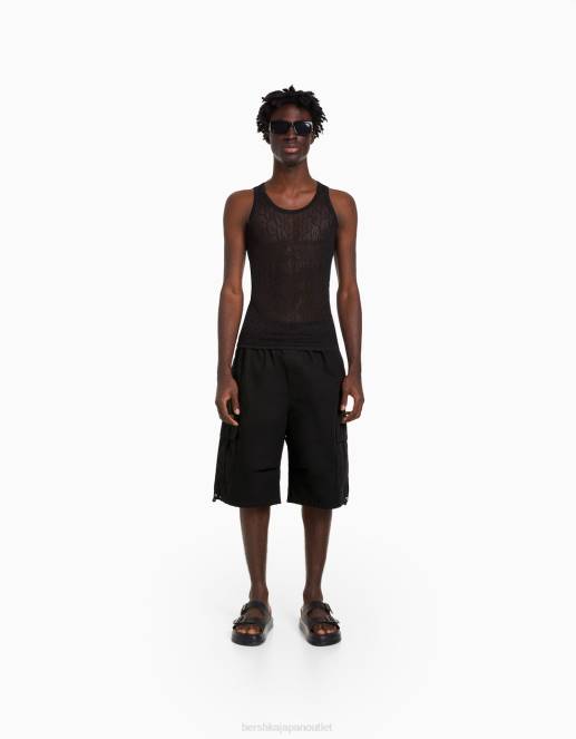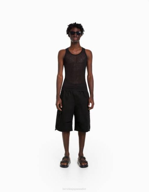 男性 Bershka パラシュート ポプリン バミューダ ショーツ 60443280 衣類 黒