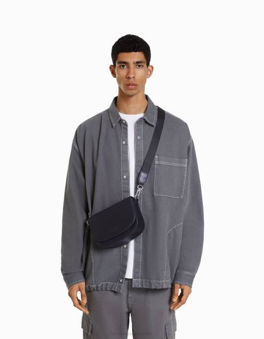男性 Bershka フラップ付きクロスボディバッグ 60443604 アクセサリー 黒