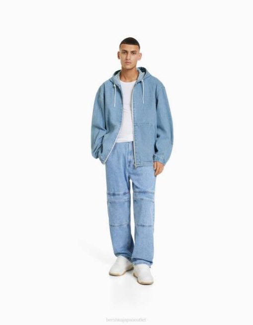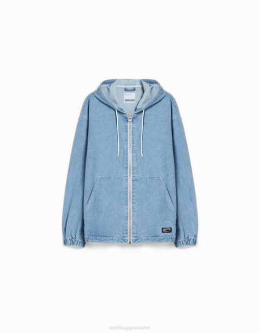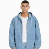 男性 Bershka フード付きデニムジャケット 60443053 衣類 ライトブルー