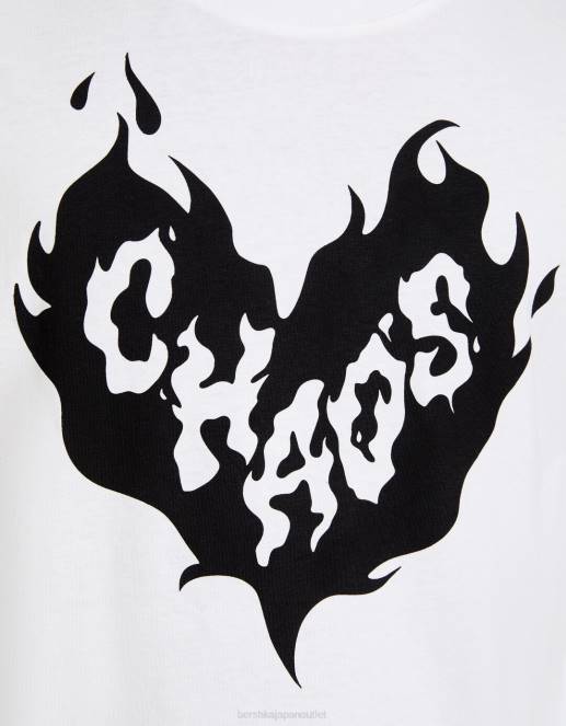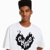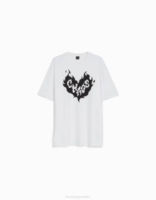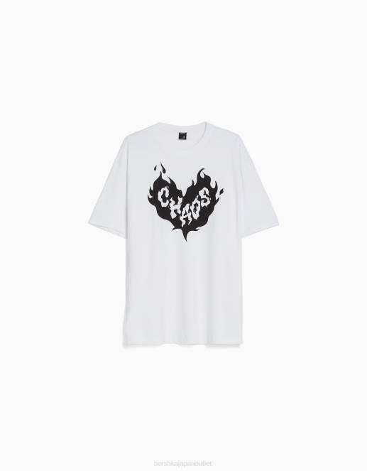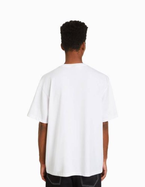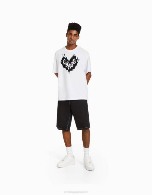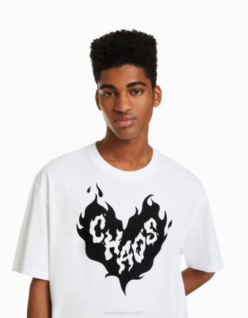 男性 Bershka プリントボクシーフィット半袖Tシャツ 60442610 衣類 白