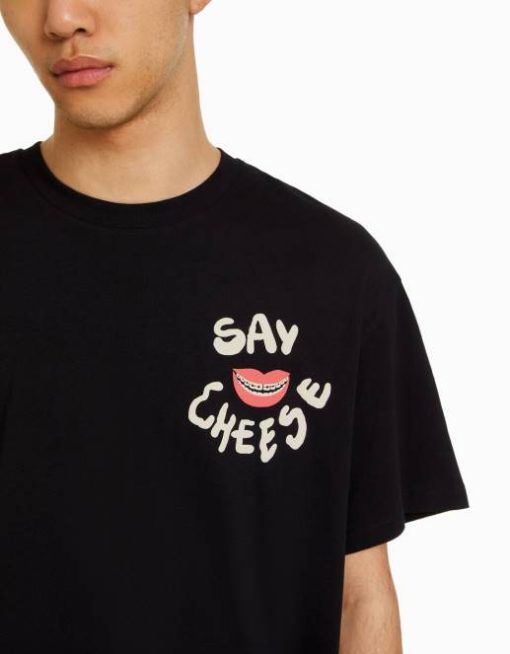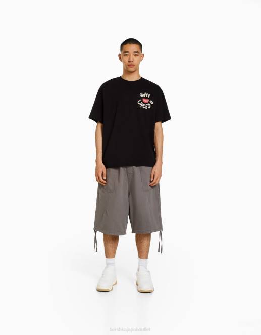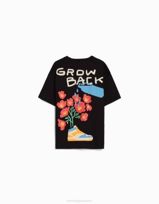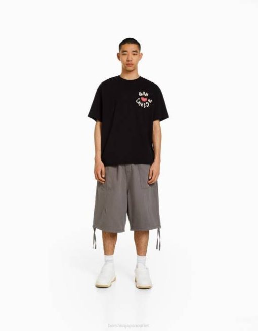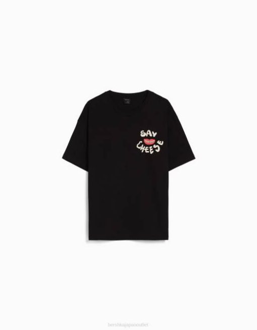 男性 Bershka プリントボクシーフィット半袖Tシャツ 60442636 衣類 黒