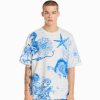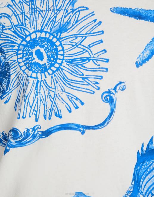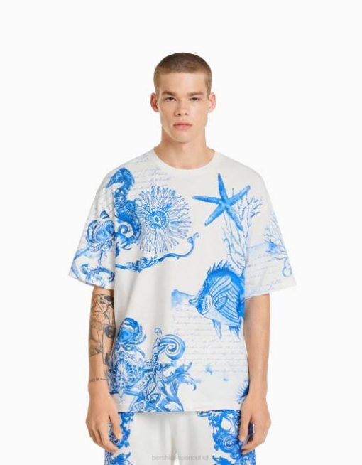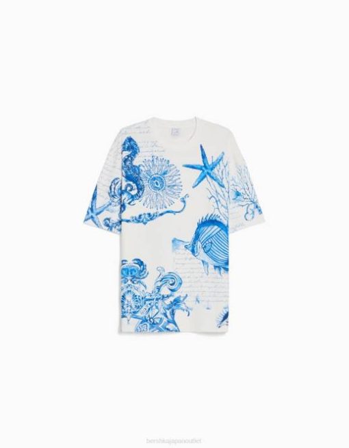 男性 Bershka プリントボクシーフィット半袖Tシャツ 60442696 衣類 オフホワイト