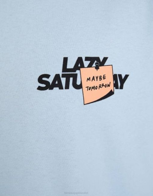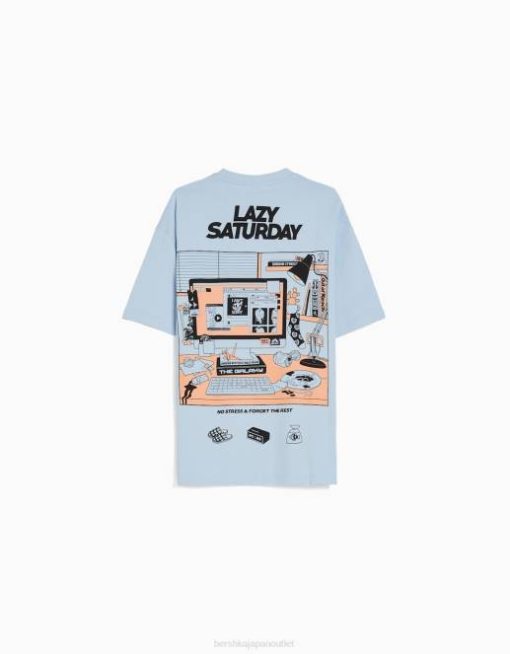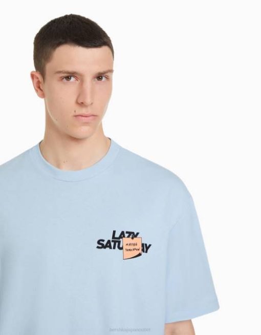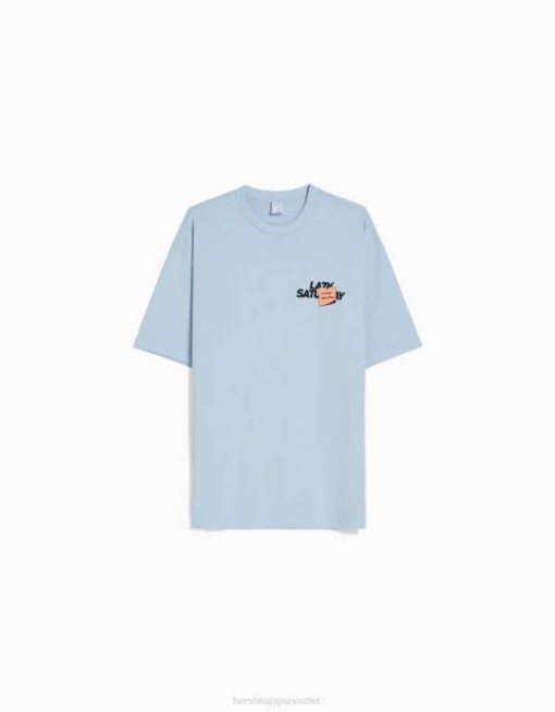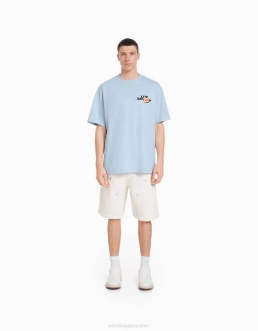 男性 Bershka プリントボクシーフィット半袖Tシャツ 60442702 衣類 ライトブルー