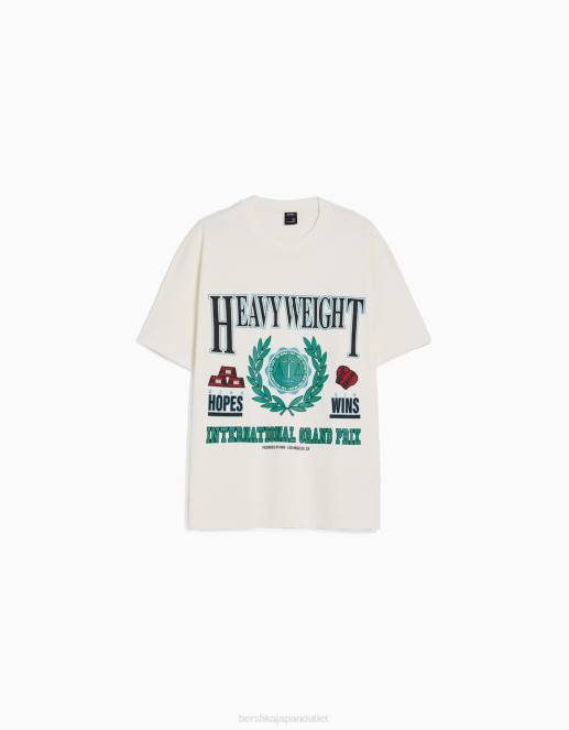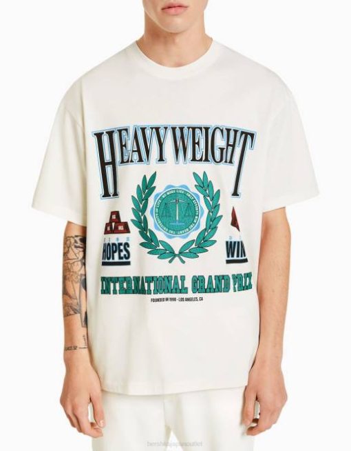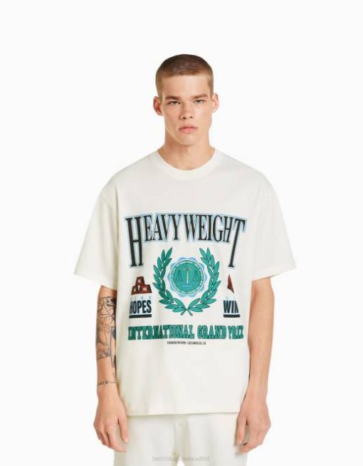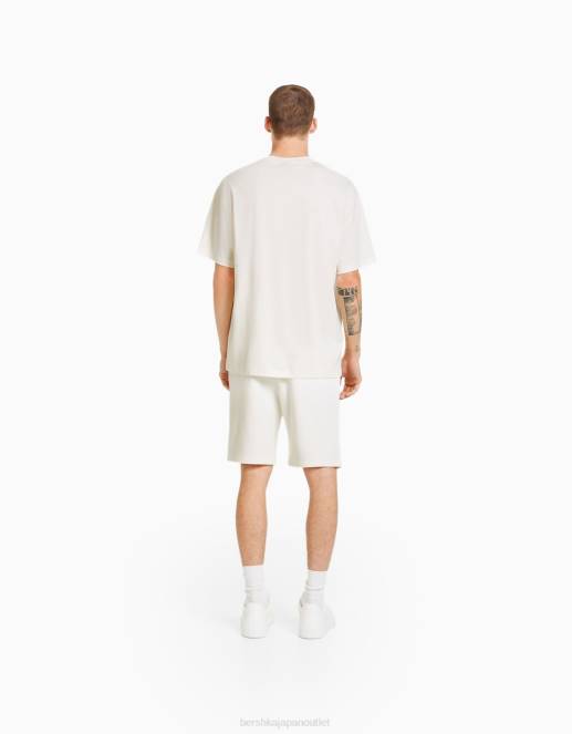 男性 Bershka プリントボクシーフィット半袖Tシャツ 60442789 衣類 オフホワイト