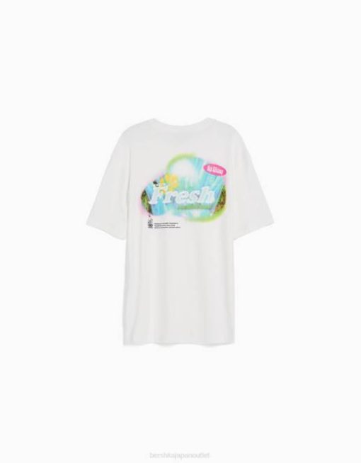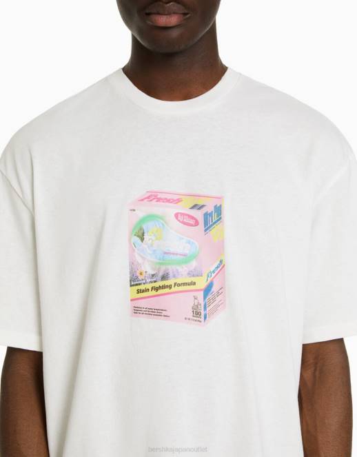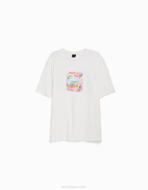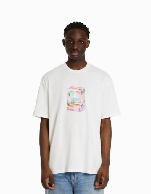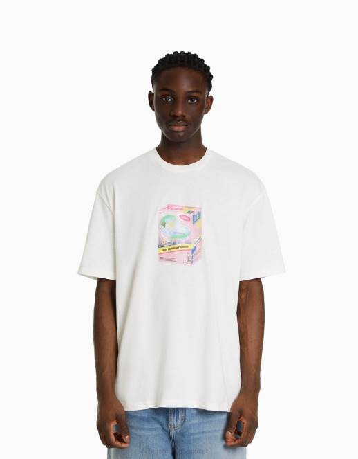 男性 Bershka プリントボクシーフィット半袖Tシャツ 60442824 衣類 白