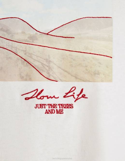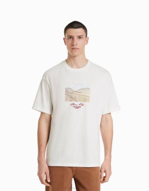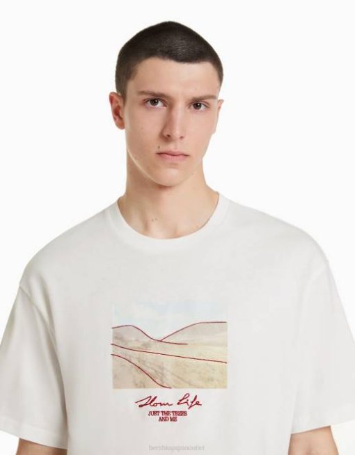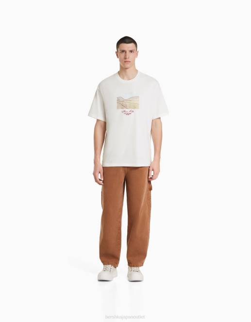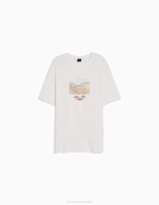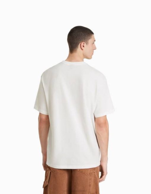 男性 Bershka プリントボクシーフィット半袖Tシャツ 60442832 衣類 白