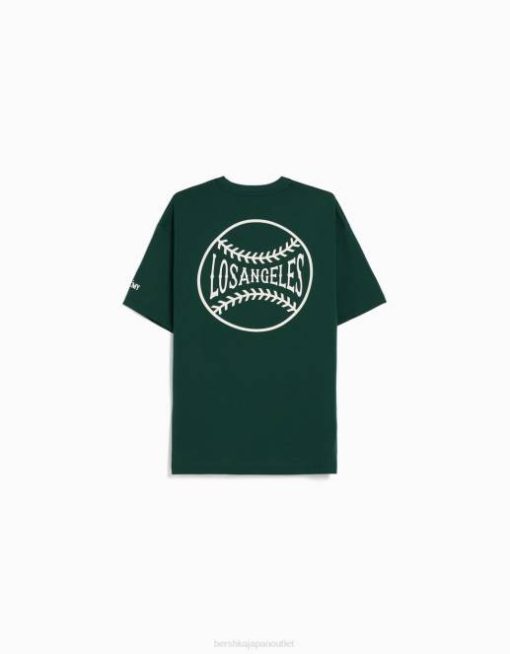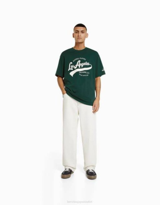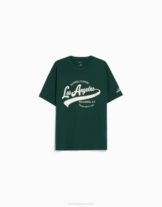 男性 Bershka プリントボクシーフィット半袖Tシャツ 60442842 衣類 緑