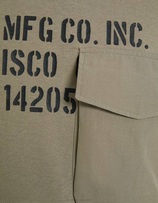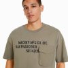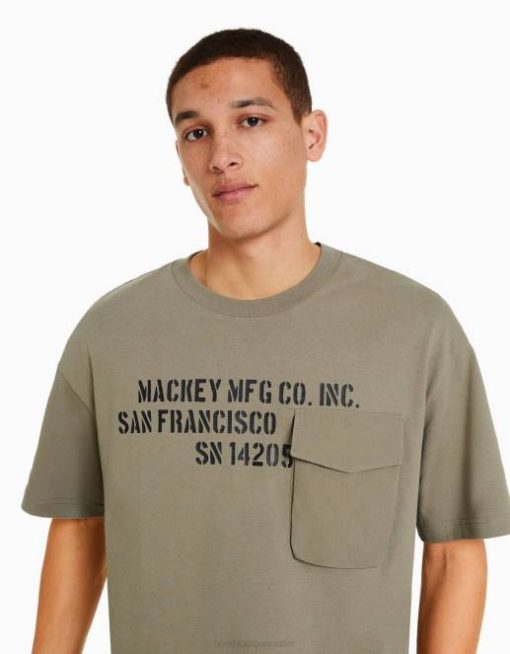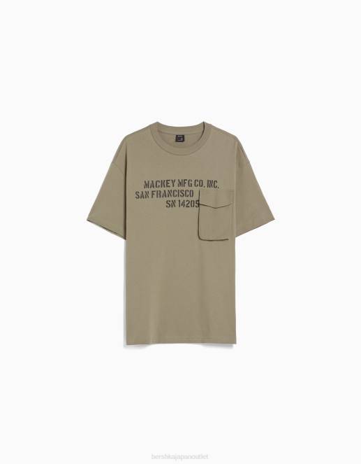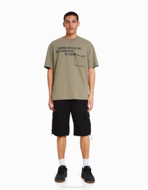 男性 Bershka プリント付きボクシーフィット半袖Tシャツ 60442833 衣類 カーキ
