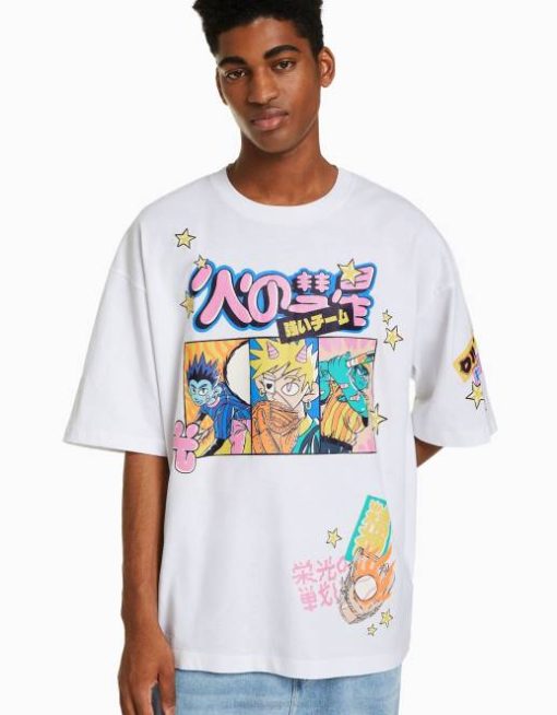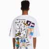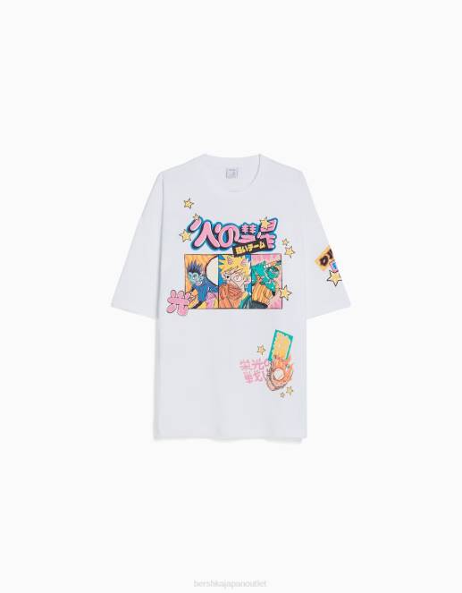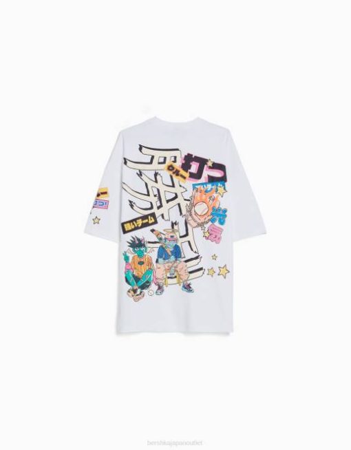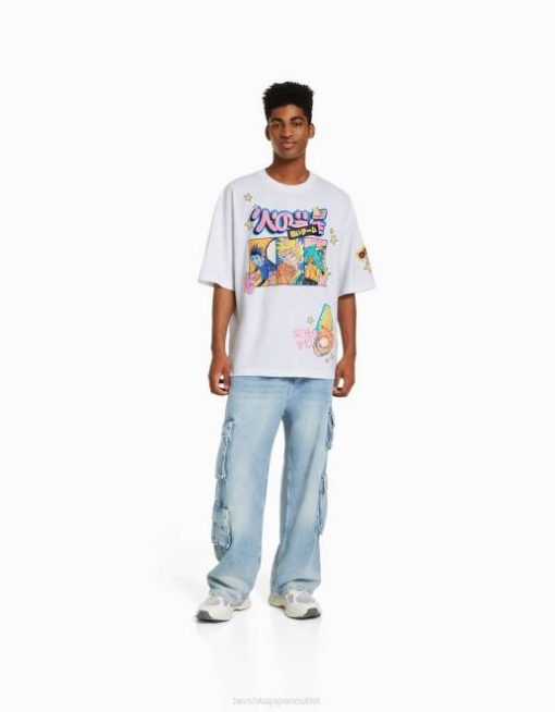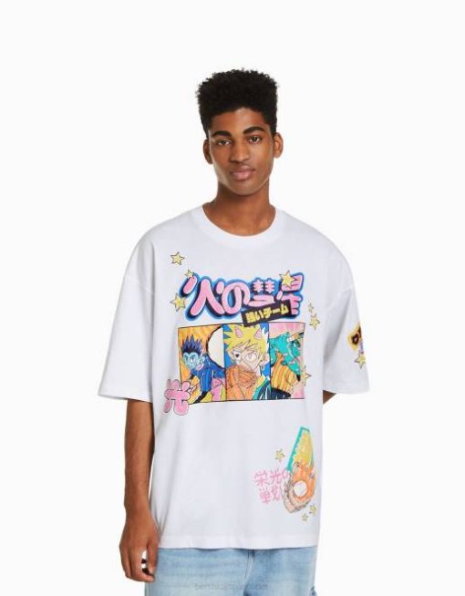 男性 Bershka プリント入りエクストラルーズ半袖Tシャツ 60442607 衣類 白