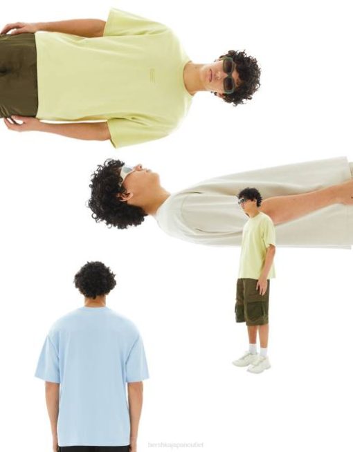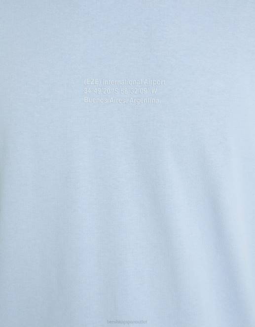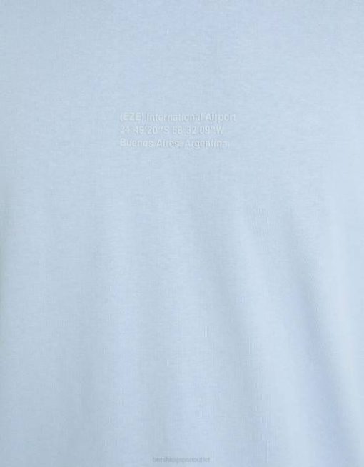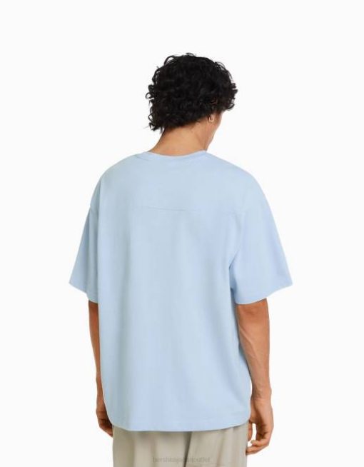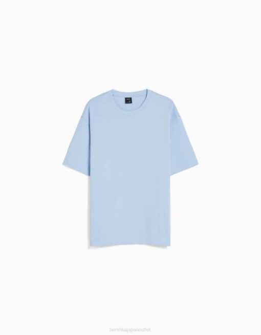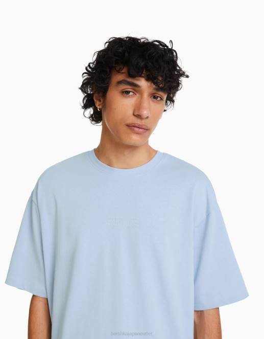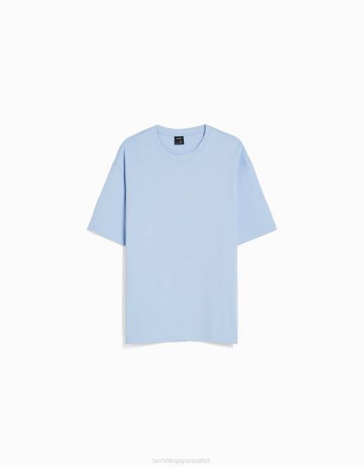 男性 Bershka プリント半袖オーバーサイズTシャツ 60442686 衣類 ライトブルー