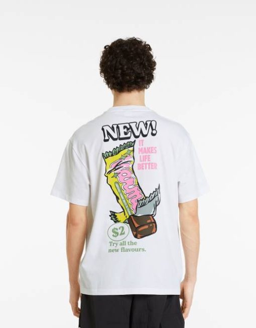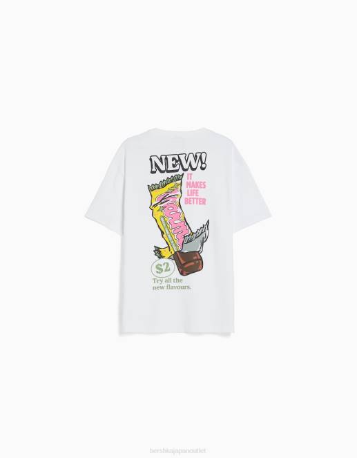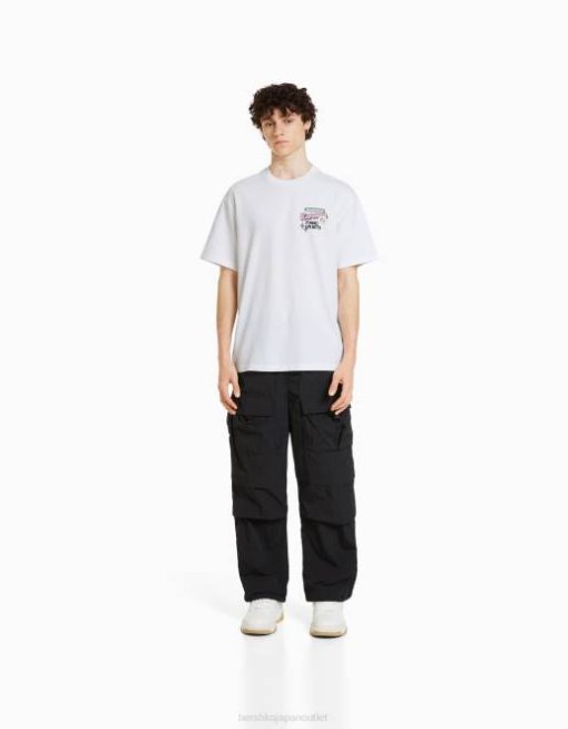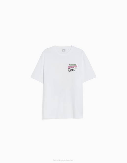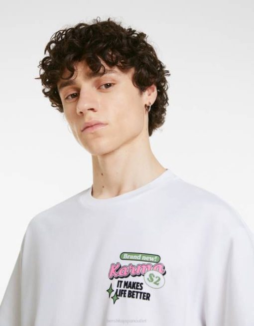 男性 Bershka プリント半袖Tシャツ 60442757 衣類 白