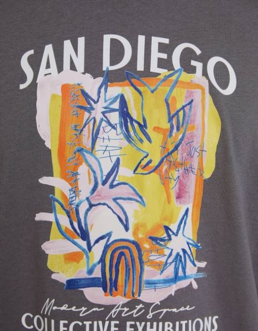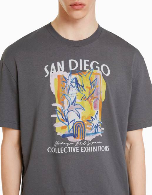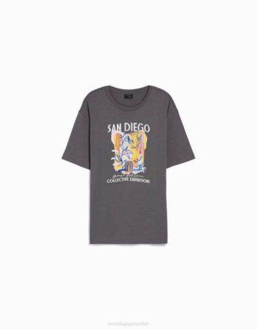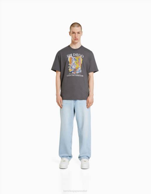男性 Bershka プリント半袖Tシャツ 60442768 衣類 グレー