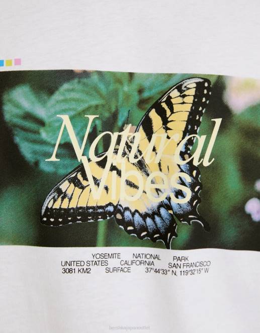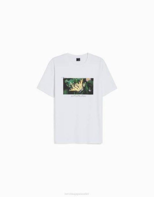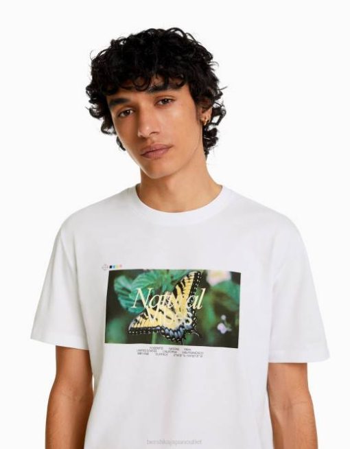 男性 Bershka プリント半袖Tシャツ 60442798 衣類 オフホワイト
