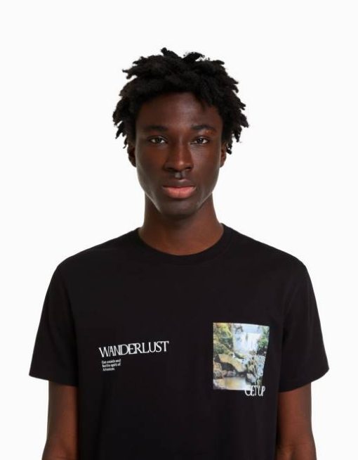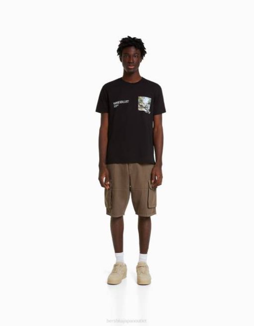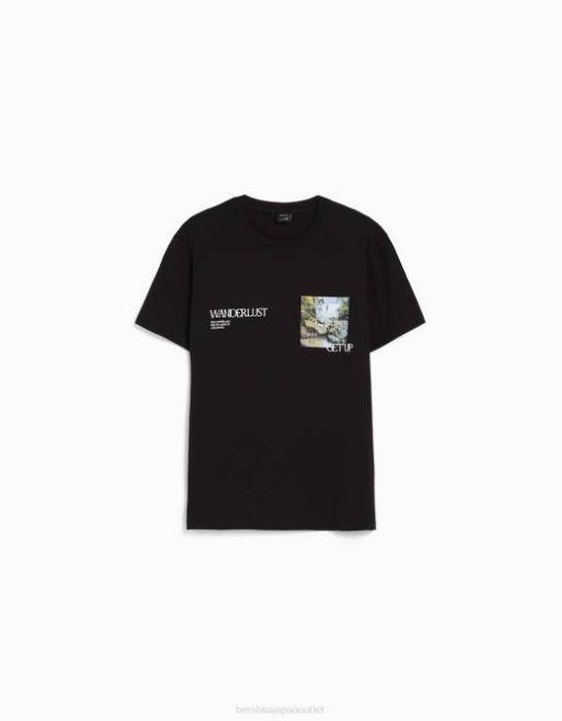 男性 Bershka プリント半袖Tシャツ 60442799 衣類 黒