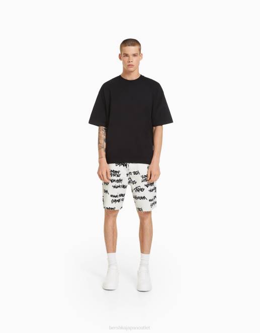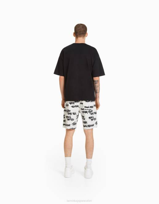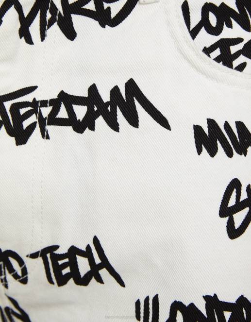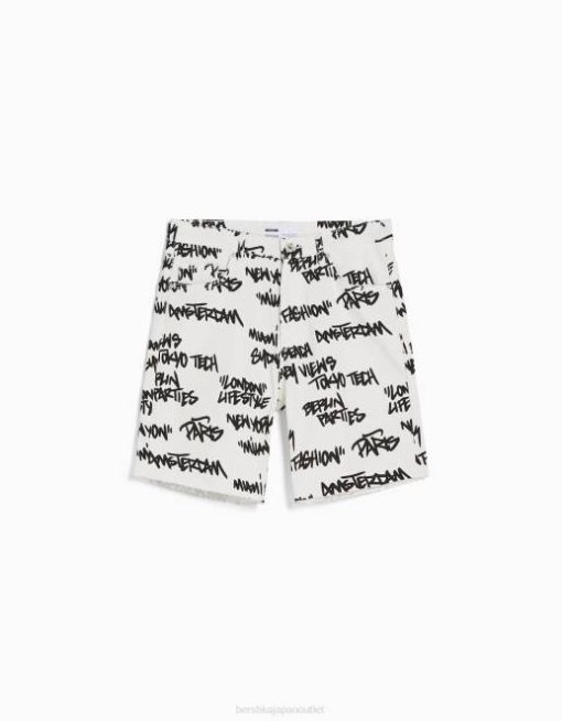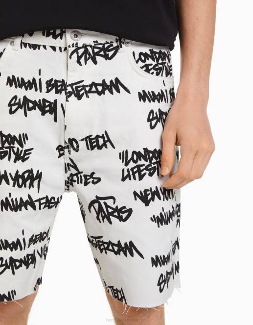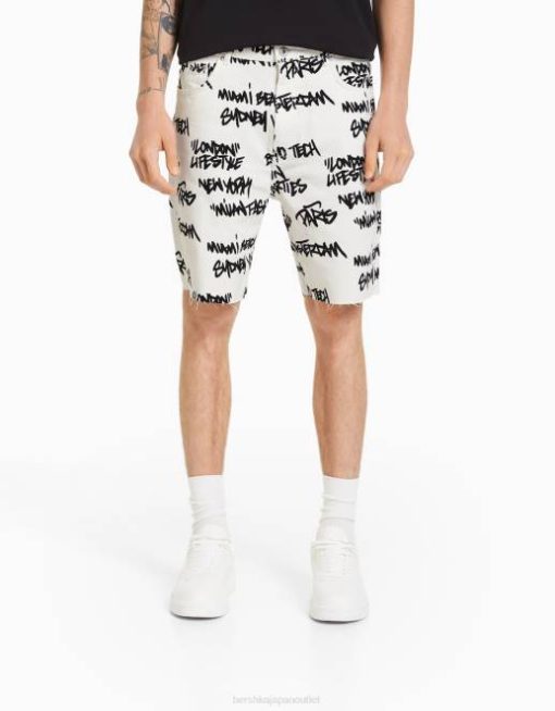 男性 Bershka プリント リップドデニム バミューダショーツ 60443335 衣類 白
