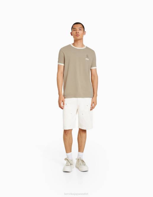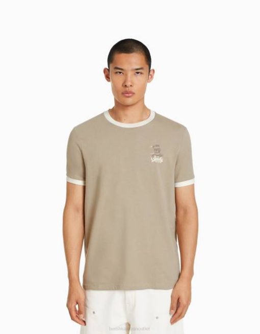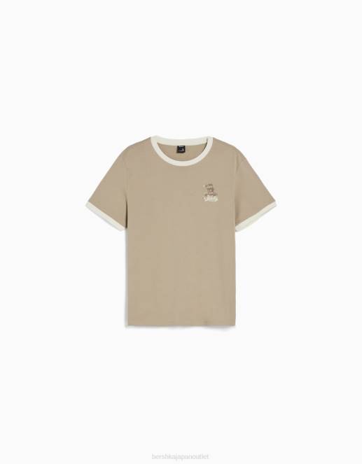男性 Bershka プリント レギュラーフィット 半袖 Tシャツ 60442645 衣類 グレー