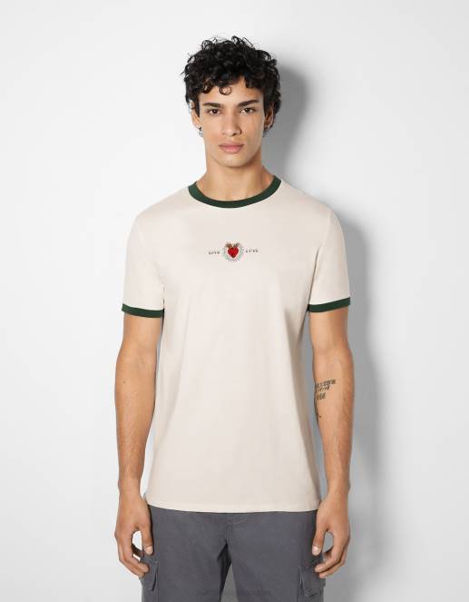 男性 Bershka プリント レギュラーフィット 半袖 Tシャツ 60442672 衣類 緑