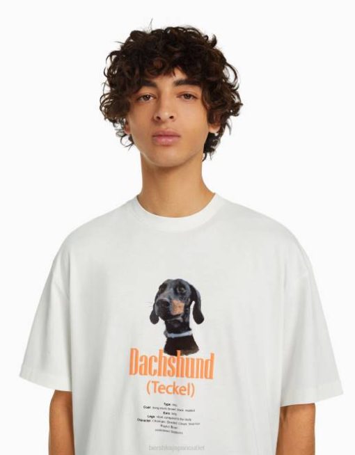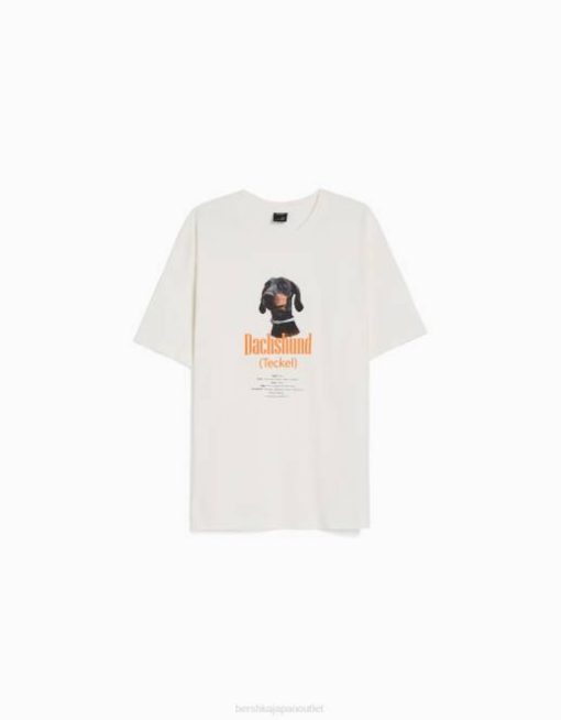 男性 Bershka プリント レギュラーフィット 半袖 Tシャツ 60442721 衣類 オフホワイト