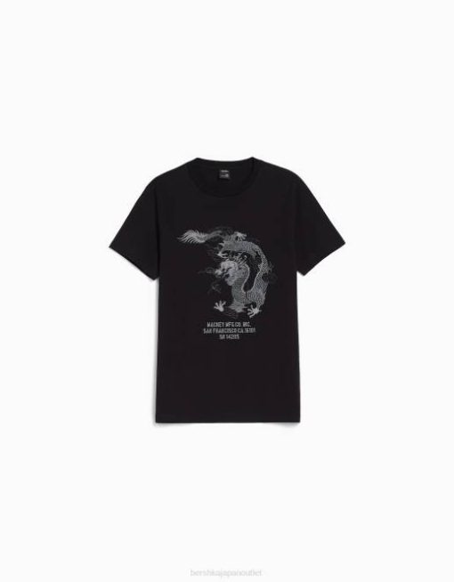男性 Bershka プリント レギュラーフィット 半袖 Tシャツ 60442726 衣類 黒