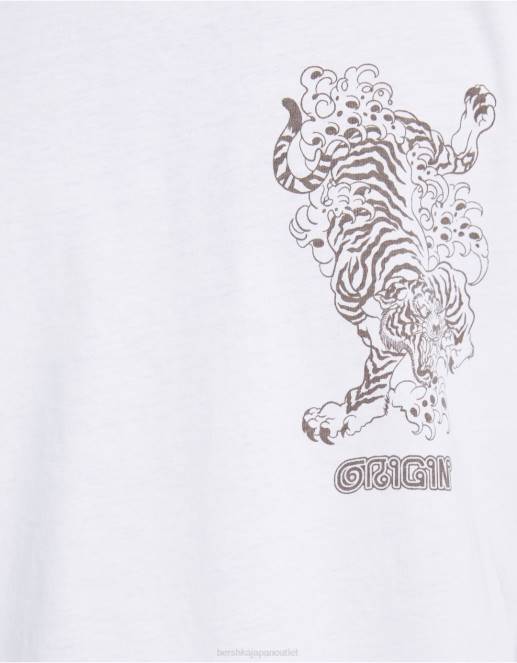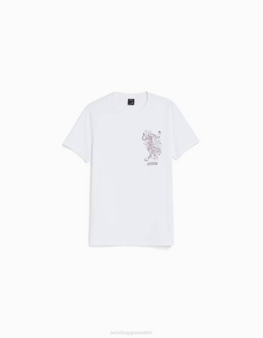 男性 Bershka プリント レギュラーフィット 半袖 Tシャツ 60442727 衣類 白