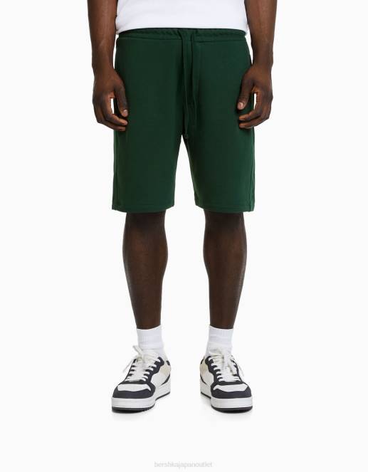 男性 Bershka ベーシックなフラシ天バミューダショーツ 60443317 衣類 緑