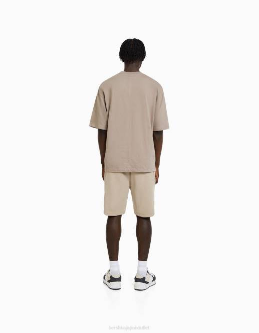 男性 Bershka ベーシックなフラシ天バミューダショーツ 60443318 衣類 キャメル