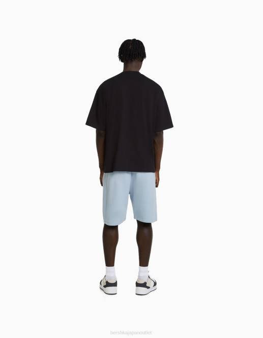 男性 Bershka ベーシックなフラシ天バミューダショーツ 60443319 衣類 ライトブルー