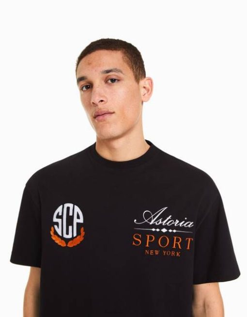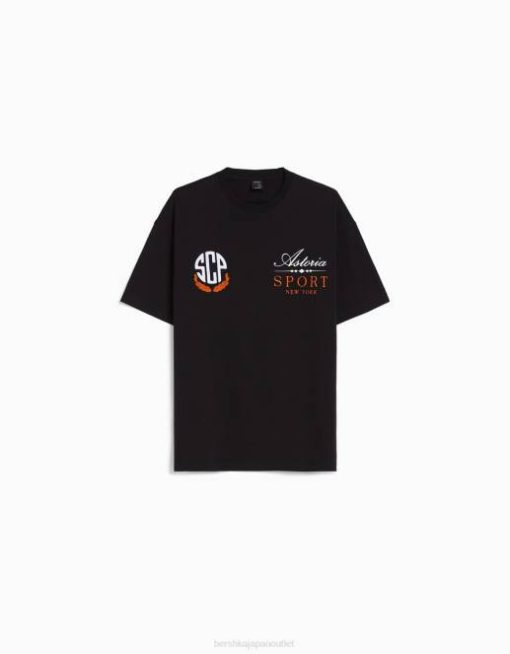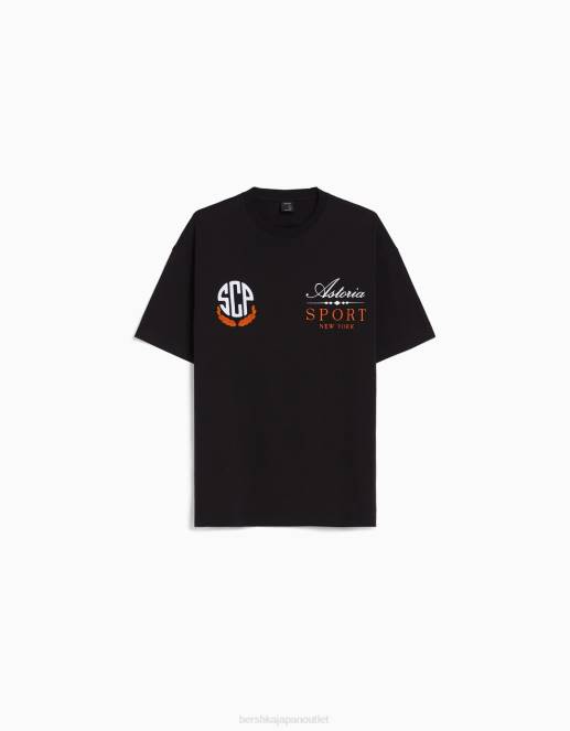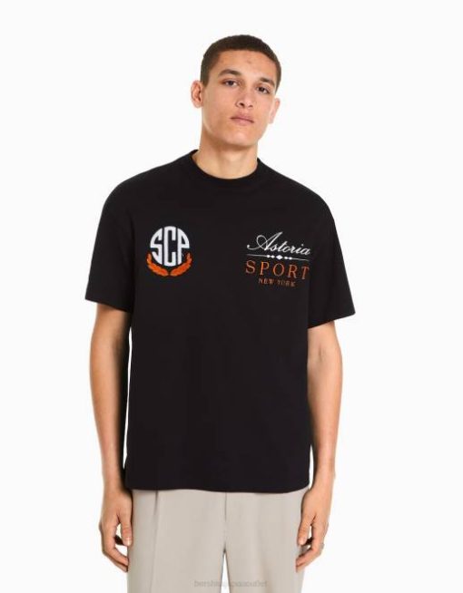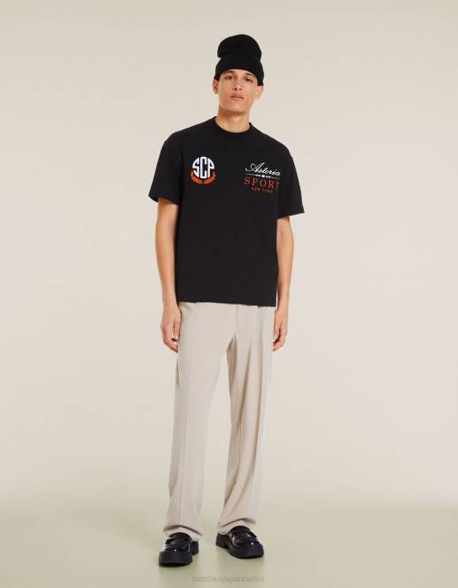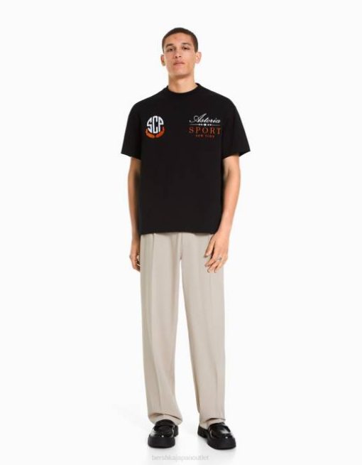 男性 Bershka ボクシーフィット ショートスリーブ Tシャツ 60442848 衣類 黒
