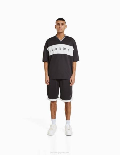 男性 Bershka メッシュプリント付きエクストラルーズフィット半袖Tシャツ 60442629 衣類 グレー