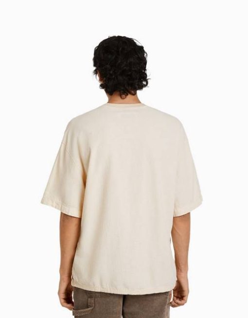 男性 Bershka ラスティック仕上げの半袖Tシャツ 60442852 衣類 砂