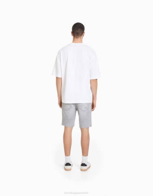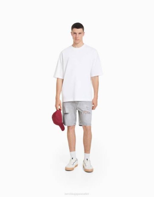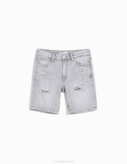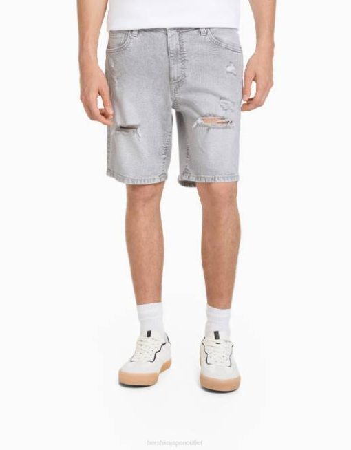 男性 Bershka リップドデニムバミューダショーツ 60443343 衣類 濃い灰色