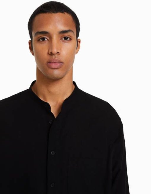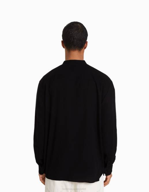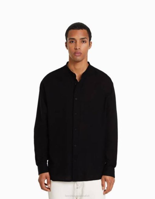 男性 Bershka リネンブレンド長袖シャツ 60442894 衣類 エクスクルーシブ