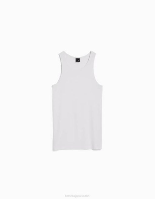 男性 Bershka リブ ノースリーブ Tシャツ 60442666 衣類 白
