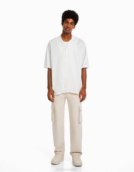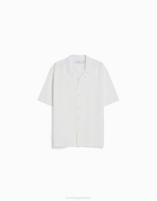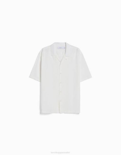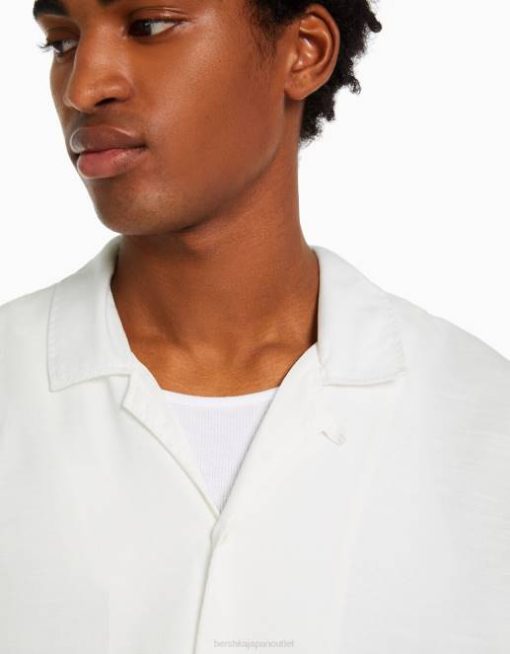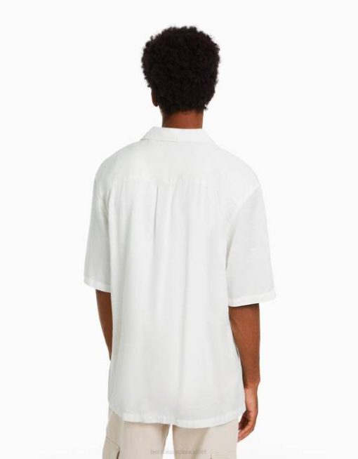 男性 Bershka リラックスフィット ラスティック半袖シャツ 60442941 衣類 白