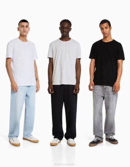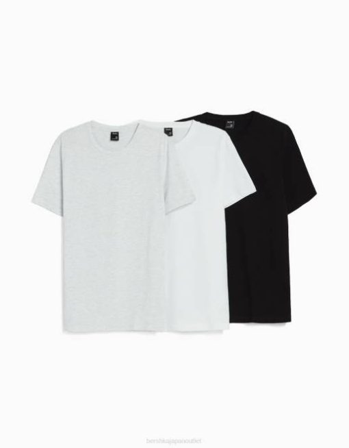 男性 Bershka レギュラーフィット半袖 T シャツ 3 枚パック 60442631 衣類 色とりどりの