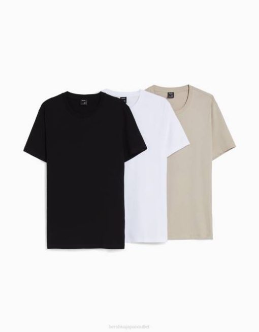 男性 Bershka レギュラーフィット半袖 T シャツ 3 枚パック 60442630 衣類 色とりどりの