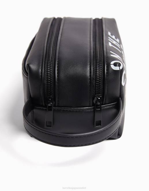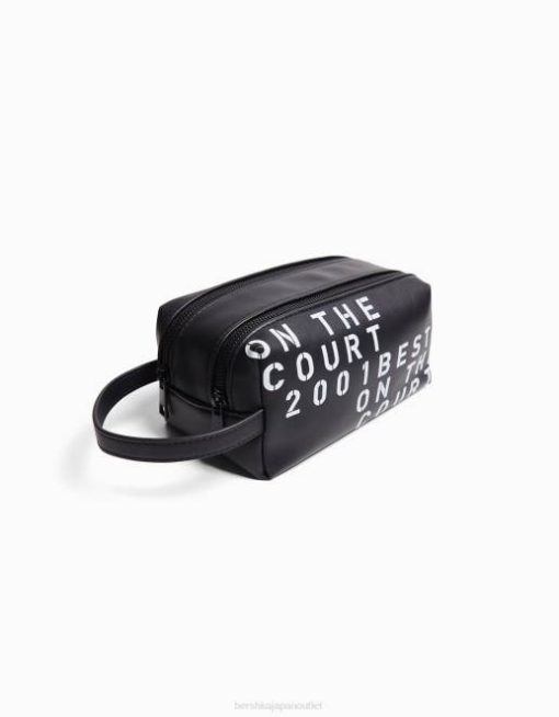 男性 Bershka レタリング入りバニティバッグ 60443584 アクセサリー 黒
