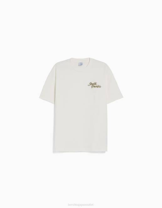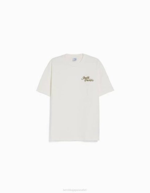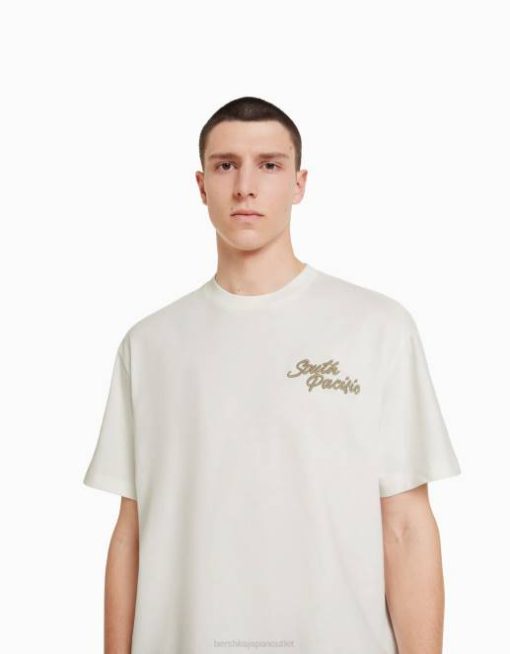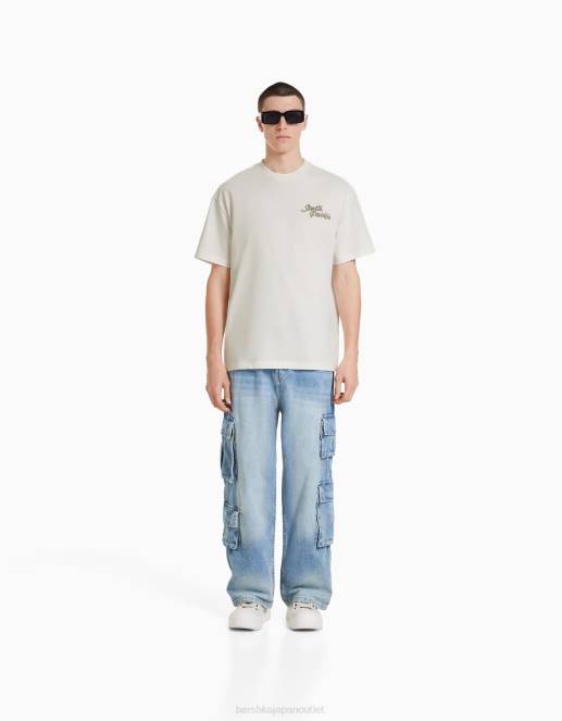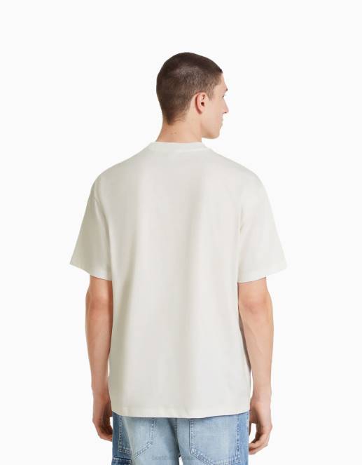 男性 Bershka 刺繍入りボクシーフィット半袖Tシャツ 60442614 衣類 白